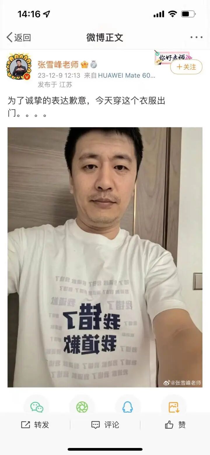 @张雪峰老师 发文回应称:我是不是又说错话了,对不起,对不起,我给大家笑一个!我在干嘛,我也在舔。可是我没觉得这有什么所谓的不好啊!!!
