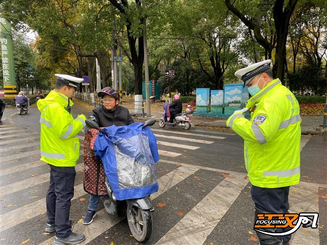 根据《荆州市电动自行车管理条例》,骑乘电动车必须佩戴头盔,民警现场发现几起未按要求佩戴头盔者。