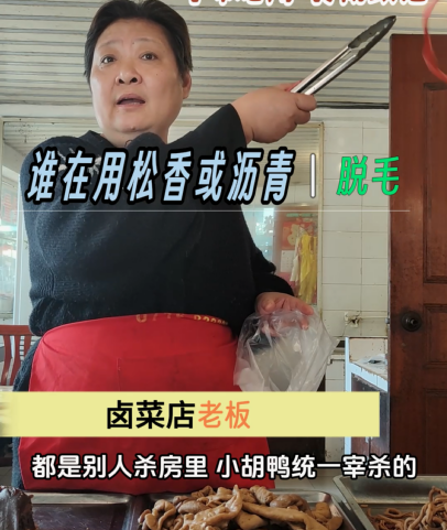 在一家卤菜店,鸡腿、鸭肠、牛肚、猪肉等各类熟食摆满货柜,记者停下了脚步。老板热情好客,在聊到卤菜的制作过程时,记者好奇问道,肉类去毛是如何处理的?