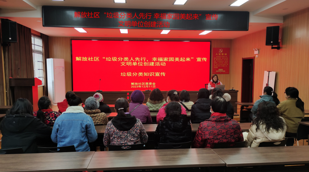 江汉风报道:为改善居民生活环境,提升辖区居民参与垃圾分类的积极性,12月11日上午,荆州区解放社区组织开展“垃圾分类人先行 幸福家园美起来”为主题的垃圾分类主题宣传活动。