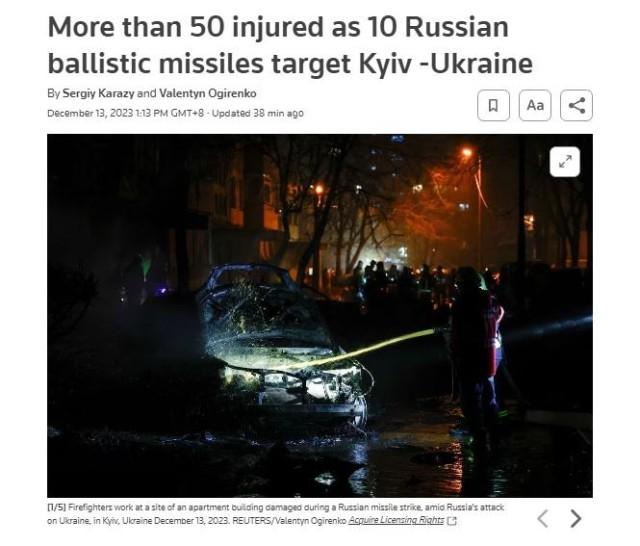 据报道,乌克兰空军在社交媒体上表示,乌克兰防空系统于当日凌晨3点左右击落了所有10枚瞄准基辅的弹道导弹。导弹碎片落在流经基辅的第聂伯河沿岸的四个地区,造成了一定程度的人员伤亡和破坏。