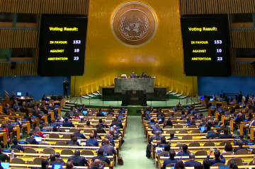 当地时间12月12日,联合国大会召开紧急特别会议,以压倒性票数通过决议,要求巴以冲突双方立即停火。