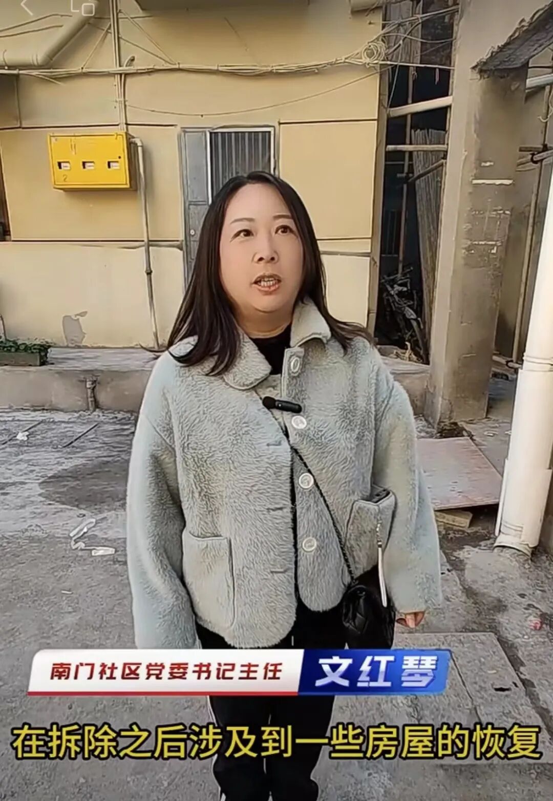 南门社区党委书记主任文红琴:在拆除之后涉及到一些房屋的恢复,这一块的资金是没有在工程的预算内明确的,资金的问题是我们现在面临的最大的困难。