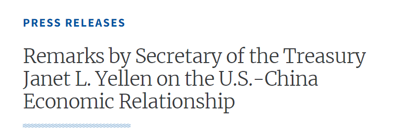 耶伦称,美中合作对于解决世界面临的巨大挑战具有重大意义,但我们不抱着“驾驭美中关系会很容易”的幻想。
