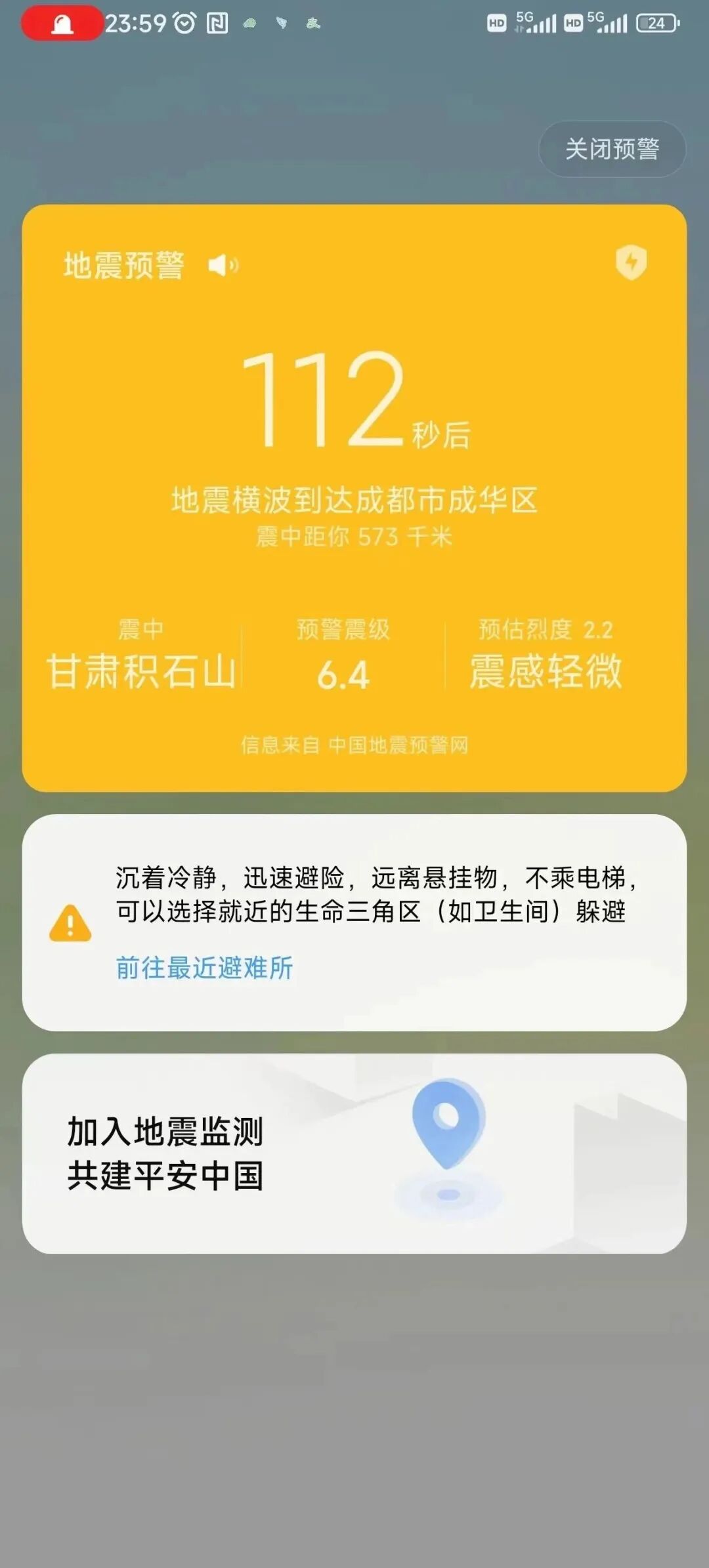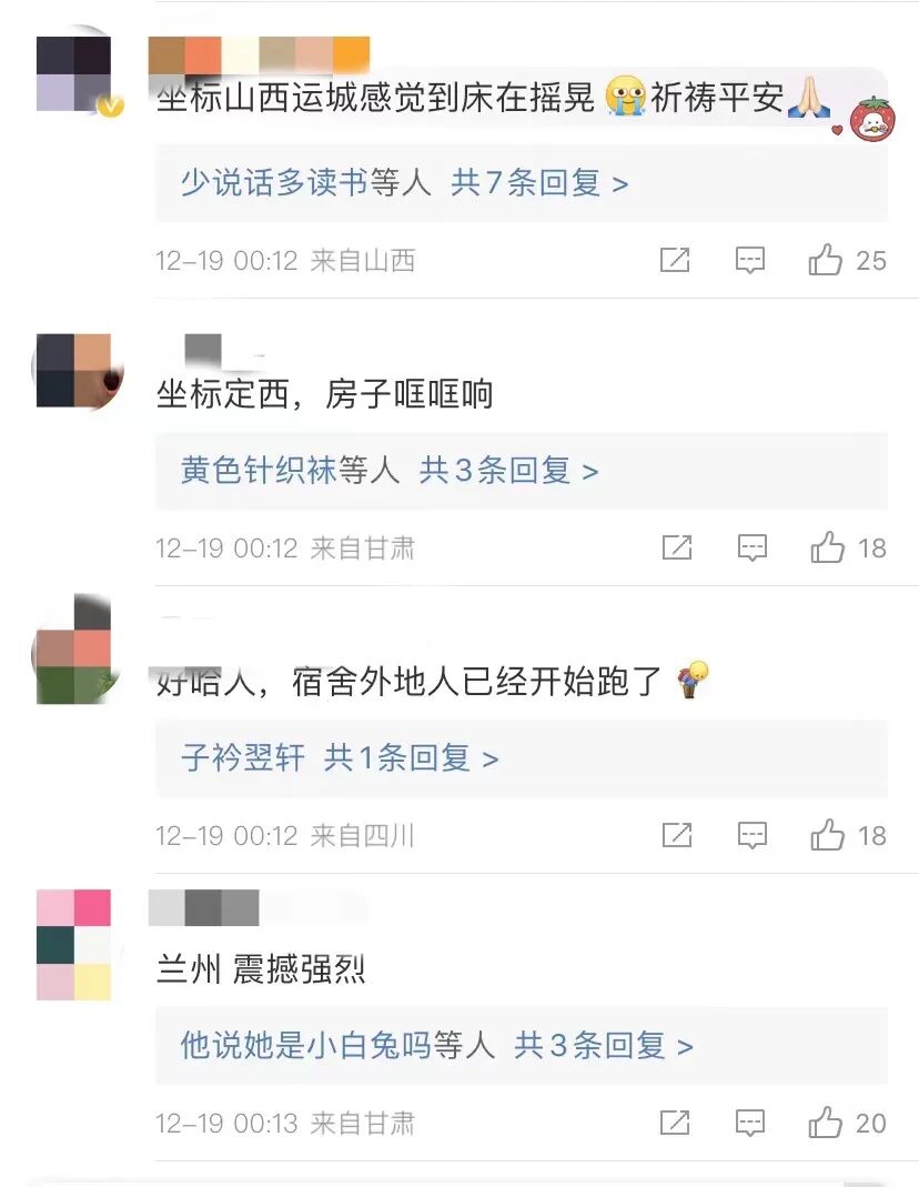据多名网友反映,甘肃兰州、四川成都、陕西西安、宁夏吴忠、青海西宁等地震感明显。