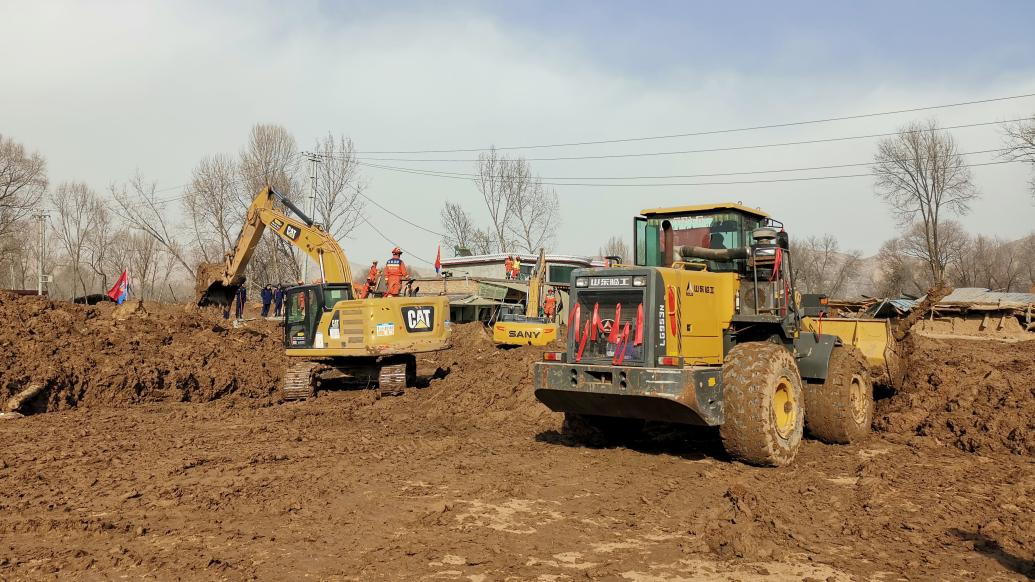 12月19日,抢险救援车辆在青海省民和县中川乡金田村清淤。新华社记者 张领 摄