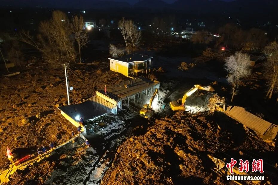19日晚,青海省海东市民和回族土族自治县中川乡金田村当地温度已下降至零下5摄氏度。人员救援工作仍在紧张进行中。中新社记者 薛蒂 摄