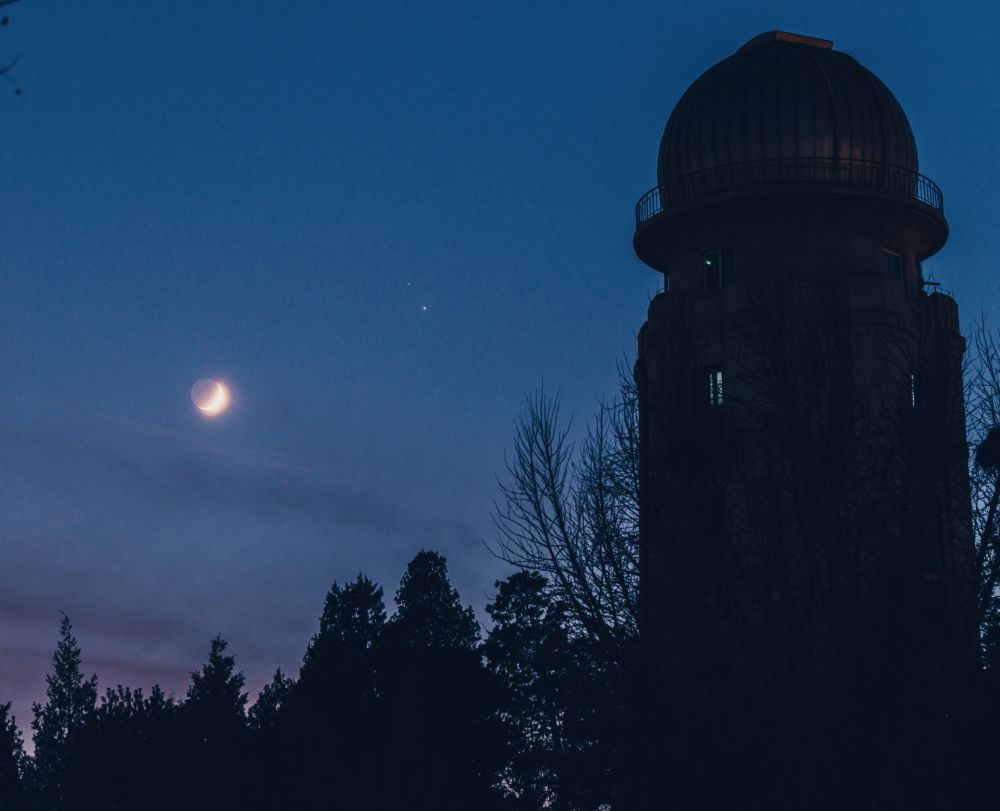 这是2020年12月17日在清华大学拍摄的土星(右上)木星(右下)伴月。(清华天文协会供图)