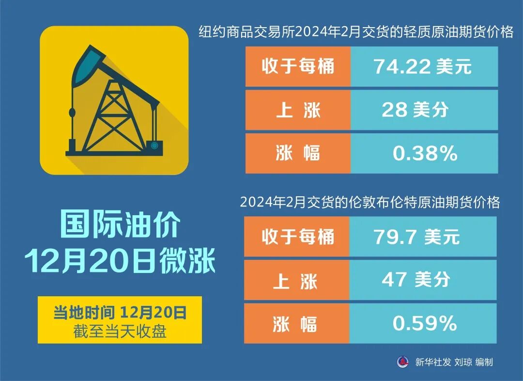 也门胡塞武装对红海船只发动袭击,给海上贸易造成干扰,迫使更多公司改变船只航线,国际油价也随之反弹。12月19日,布伦特原油期货上涨1.6%,报每桶79.23美元,为12月1日以来最高。美国原油期货上涨1.3%,报每桶73.44美元,也升至逾两周以来的最高水平。12月20日,国际油价再度上涨,布伦特原油一度重返80美元关口。