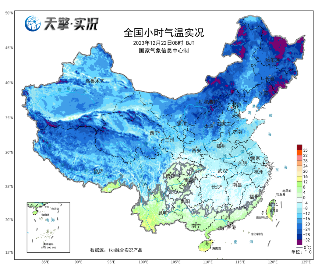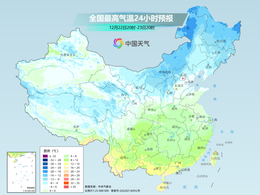 12月22日进入冬至节气,天气也冷得十分应景。22日早晨,最低气温0℃线位于贵州南部至华南北部一带,这也是今年立冬以来0℃线到达的最南端;合肥、武汉、南京、上海、杭州、长沙、南昌、昆明、福州、广州、海口11个南方省会级大城市气温刷新立冬来新低。