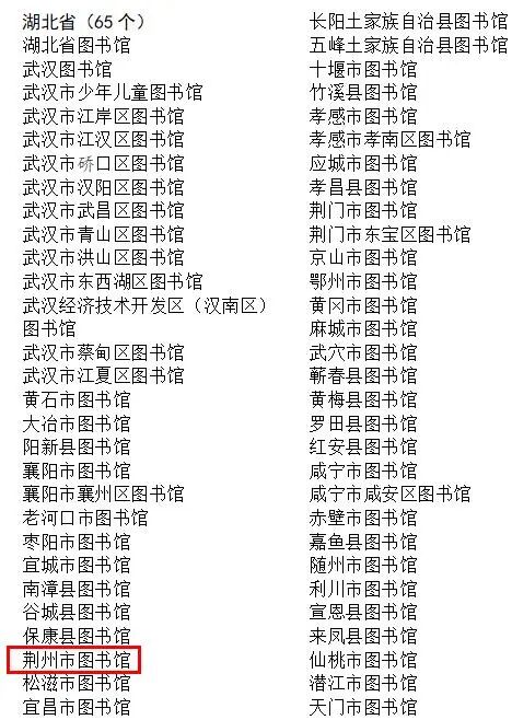 12月,文化和旅游部官网发布了《关于公布第七次全国县级以上公共图书馆评估定级上等级馆名单的通知》,经自评、评估、公示等环节,荆州市参评的公共图书馆中,荆州市图书馆、松滋市图书馆获评“国家一级图书馆”。