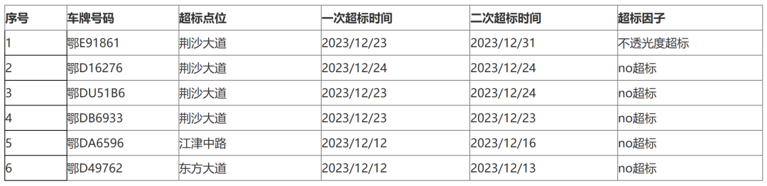尾气排放超标车辆名单