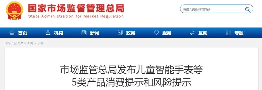 国家市场监督管理总局发布5类产品消费提示和风险提示: