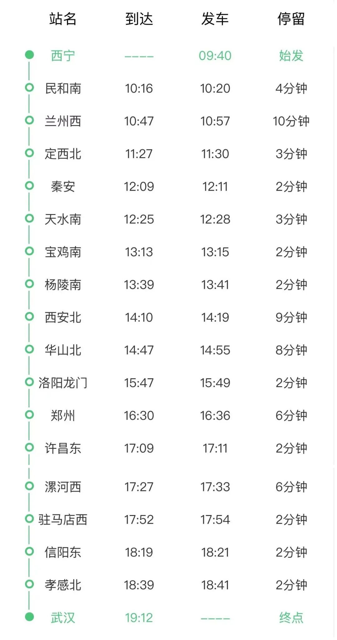 武汉直达!这条高铁线路即将开通 2024-01-07 08:37 中国铁路青藏集团有限公司、西宁晚报、武汉发布 0 从中国铁路青藏集团有限公司获悉 1月10日 武汉至西宁 将首次开行 G852次“复兴号”直达动车 运行时间将 由二十几小时缩短至十小时以内 当日即可抵达 12306APP票价 武汉至西宁直达动车经停站 西宁至武汉直达动车经停站