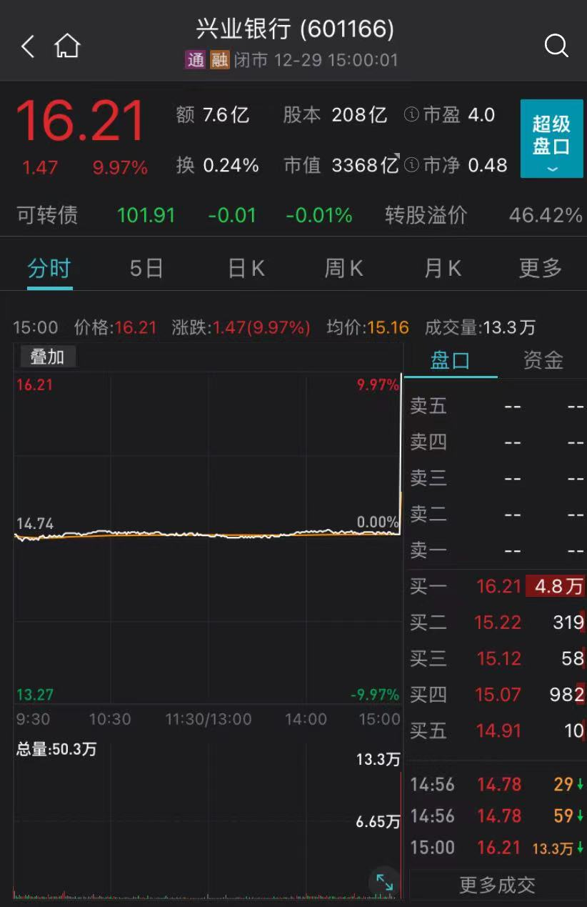 还记得2023年最后一个交易日(2023年12月29日)兴业银行尾盘直线涨停一幕吗?