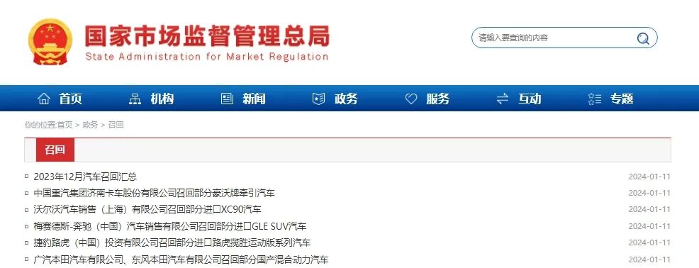 日前,捷豹路虎(中国)投资有限公司根据《缺陷汽车产品召回管理条例》和《缺陷汽车产品召回管理条例实施办法》的要求,向国家市场监督管理总局备案了召回计划。自2024年3月29日起,召回2022年7月4日至2022年11月30日生产的部分进口2023款路虎揽胜运动版汽车,共计1987辆。