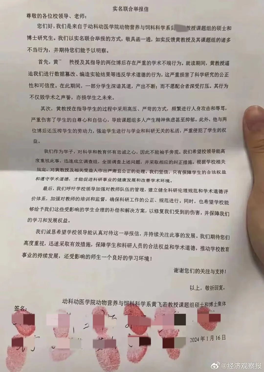 华中农业大学动物科学技术学院、动物医学院在官网发布说明称,1月16日下午,学院关注到网上关于该教师黄某某涉嫌学术不端等问题的举报信息,立即成立工作专班,启动调查程序。学院始终坚持师德师风第一标准,对学术不端行为零容忍,将依据调查结论按规定做出处理。