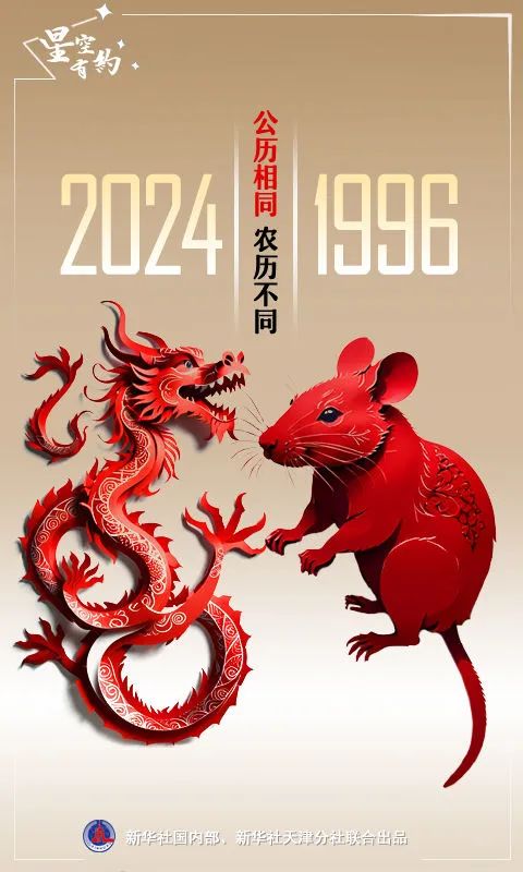 1996年和2024年的公历日历分布完全相同,农历日期是不是也完全相同?“农历日期并不相同。1996年的元旦对应的农历日期是十一月十一,而2024年的元旦对应的农历日期是十一月二十。由于这两个年份的第一天所对应的农历日期不同,剩下的365天所对应的农历日期自然也就不会相同。”杨婧说。