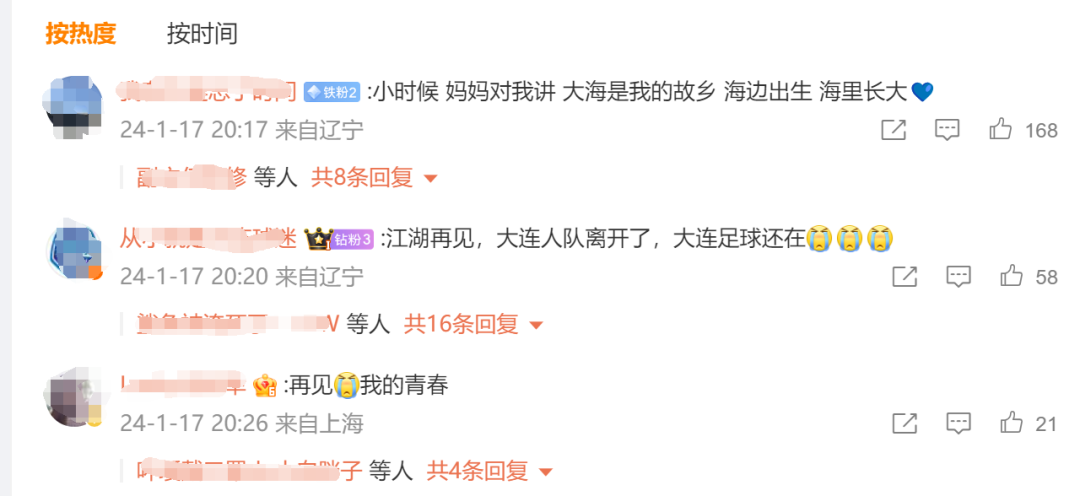 对于大连人的解散,有球迷表示,“江湖再见,大连人队离开了,大连足球还在。”“再见,我的青春。”