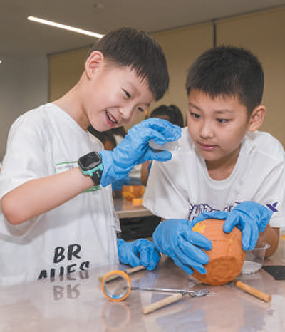 安吉古城遗址博物馆中,学生们合作完成模拟文物修复项目。
