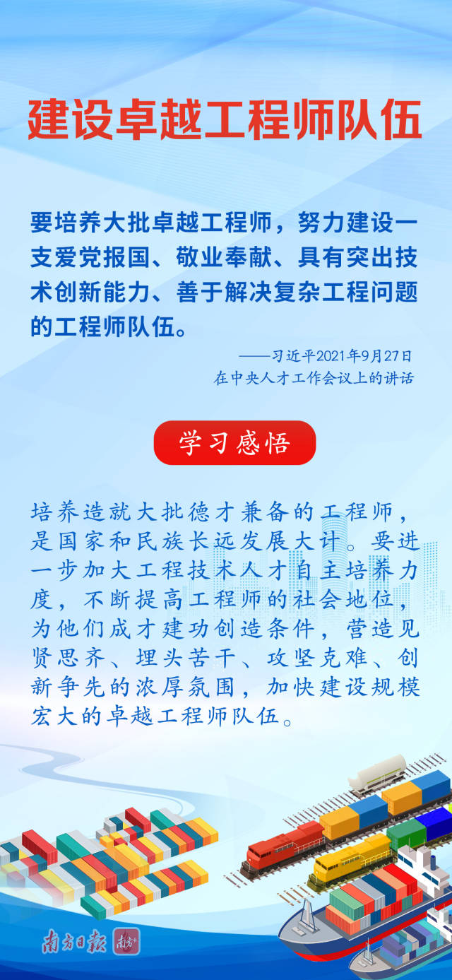 党的十八大以来,习近平总书记高度重视工程技术事业,亲切关怀工程技术人员,要求加快建设规模宏大的卓越工程师队伍。这其中有何深意?南方+梳理了习近平总书记关于此的重要论述,与您一起学习体悟。