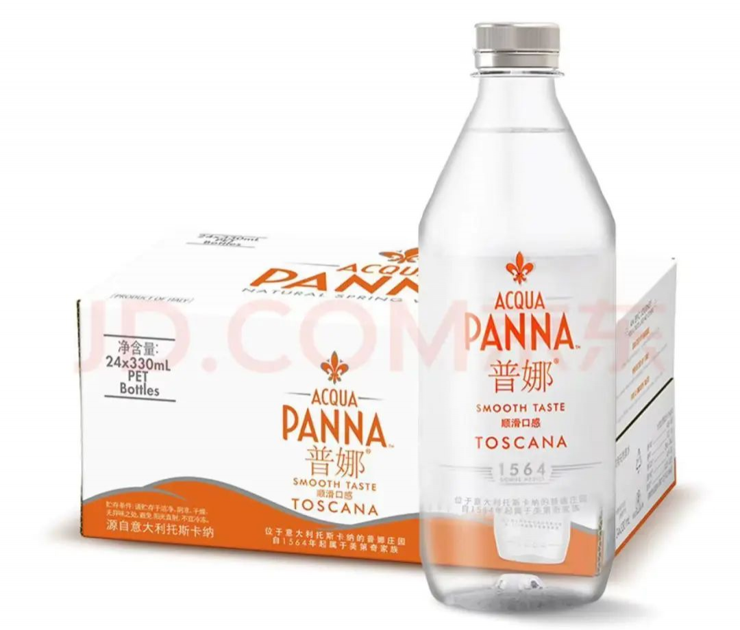 普娜(Acqua Panna)是雀巢旗下定位高端市场的饮用水品牌,2020年进入中国市场。普娜官方公众号介绍,品牌起始于1954年,普娜的水源地是意大利佛罗伦萨的托斯卡纳山脉。在电商平台品牌旗舰店中,其宣称“水质取自海拔900米山脉”“低钠淡矿”“天然弱碱”“呵护宝宝肠胃”。