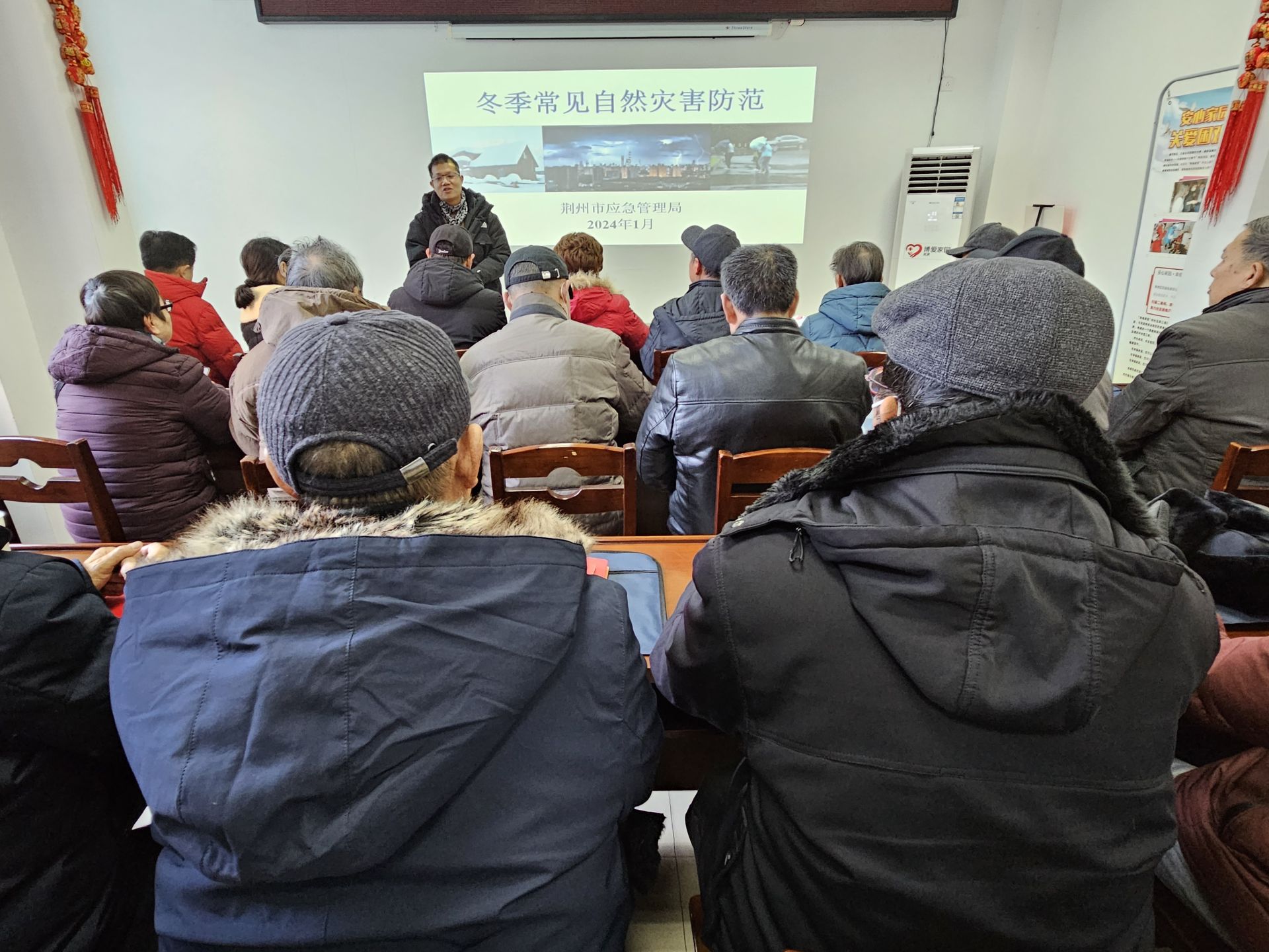 江汉风报道:冬季自然灾害频发,强冷空气侵袭引发的各类恶劣天气给居民的生活增加诸多不安全因素,为提高居民防范意识和能力,1月23日,荆州市应急管理局来到安心桥社区开展冬季减灾防灾专题宣传讲座。