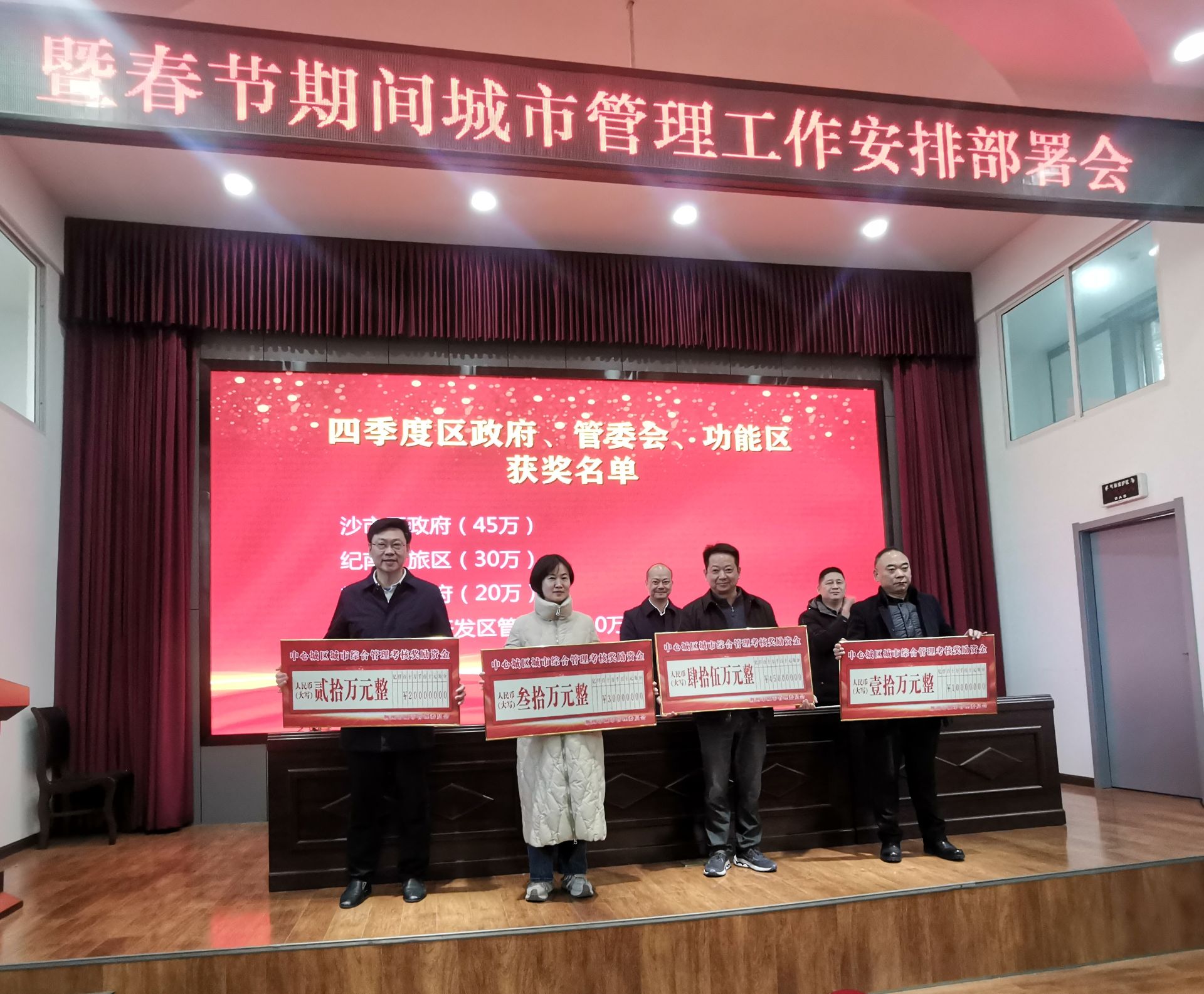 会议通报了中心城区2023年第四季度城市综合管理工作,199万元重奖一批考核优秀单位。