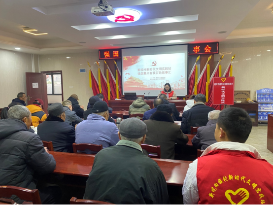 1月18日,“强国复兴有我”百姓宣讲走进荆州区郢城镇荆安村,宣讲身边好人好事,传递正能量,让二十大精神在荆安村民心中落地生根。