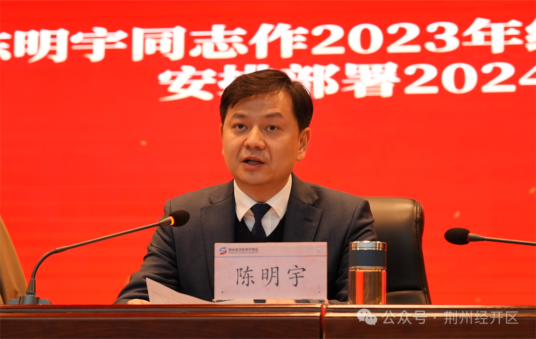经开区党工委副书记、管委会主任陈明宇作经开区2023年经济工作报告、安排部署2024年工作。