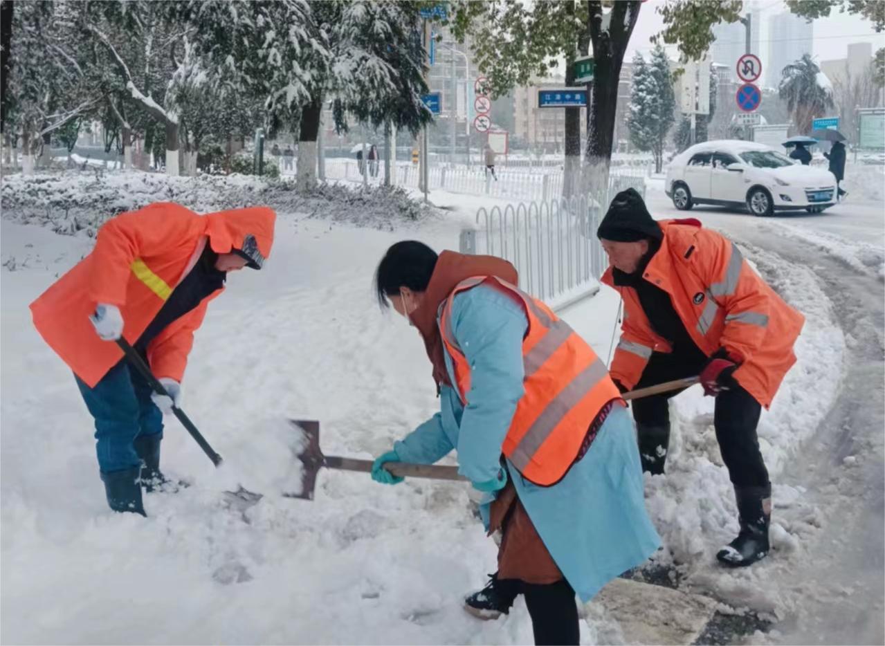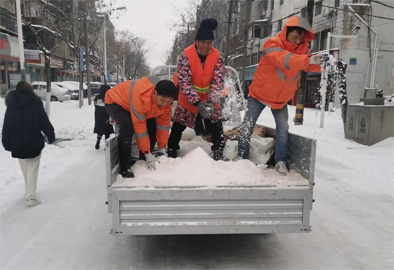 4∶00,道路保洁员和6支环卫应急队早已奋战在铲雪除冰一线。