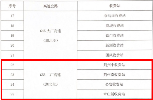 针对近日湖北省境内G4京港澳、G45大广和G55二广高速公路等部分路段因恶劣天气造成车辆拥堵严重的情况,根据交通运输部调度会精神,经省人民政府同意,自2024 年2月5日15: 00至20: 00,对在指定收费站 (详见附表)驶出高速公路的所有车辆实施免费放行。