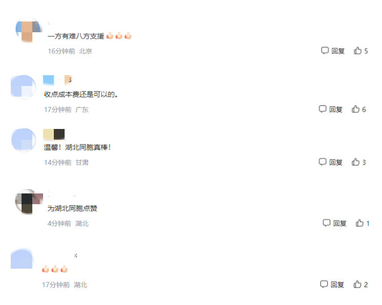 2月4日,许广高速湖北天门段因冰雪拥堵,几乎成了停车场,离高速公路仅200米的一家养老院变身“爱心驿站”,为滞留高速公路的旅客免费提供热水热饭,以及烤火、上卫生间等服务,2月5日,该养老院的院长称,他们的食材都是现成的,工作人员也一直忙碌着,保证大家来了随时都有热汤热饭,当天一共接待了近百人。