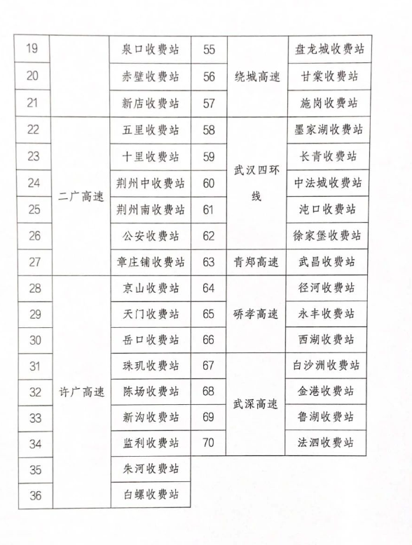 针对近日湖北省境内部分高速公路路段因恶劣天气造成车辆拥堵严重的情况,结合最新天气预报及路网运行情况,经省人民政府和交通运输部同意,调整免费放行收费站所及时间区间,自2024年2月5日20:00至6日12:00,对在指定收费站(详见附表)驶出高速公路的所有车辆实施免费放行。