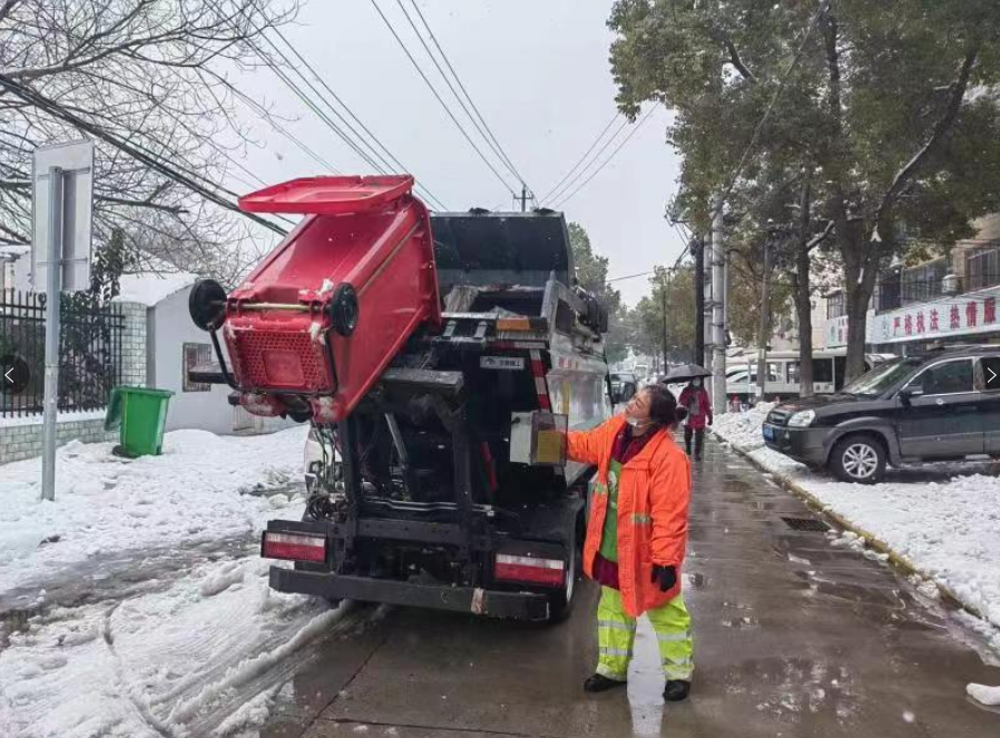 他们握着扫帚、抡着铁锹、开着铲车……连日来,荆州区城管系统配合默契、干劲十足,无惧严寒。2月5日夜,荆州区城管组织全员上岗,通宵鏖战,畅通居民出行道路,保障垃圾及时清运。2月6日白天,环卫工人加班加点投入雪后垃圾清运工作,来回往返、巡回清运、增加频次,确保日产日清。同时,因路面较多树枝折断、倒伏,环卫工人还配合园林工人处置堆积的树干、断枝等。负责垃圾清运的杨师傅说,前几天,冰厚路滑,垃圾不好清运,我们铲完冰雪恢复道路交通后,又赶紧投入清运工作。今天一大早,我们已经拖了4车,比平常翻了一番。