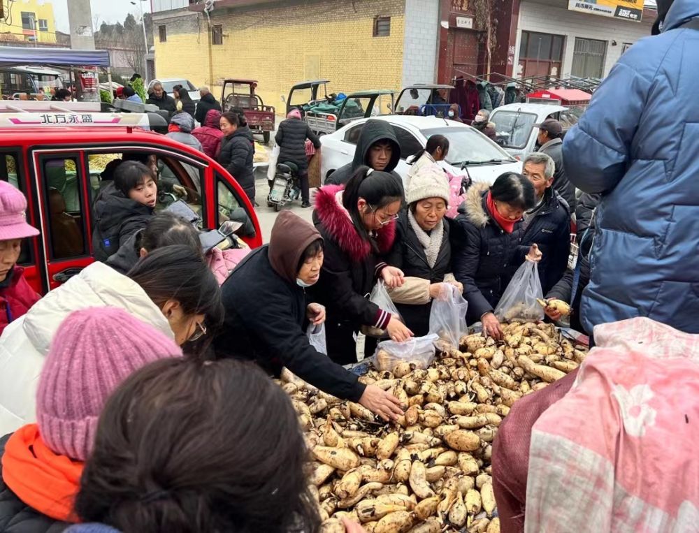 “自家种的辣椒和圆白菜,新鲜得很。”58岁的李小星高声吆喝着,摊位前不一会儿就围满了人。“差不多都能卖完,一天能挣800多块钱。”李小星是夏县辛董村人,在村里有3个蔬菜大棚。除了出来摆摊,村里合作社统一和电商平台对接售卖,“蔬菜不愁卖。”他高兴地说。