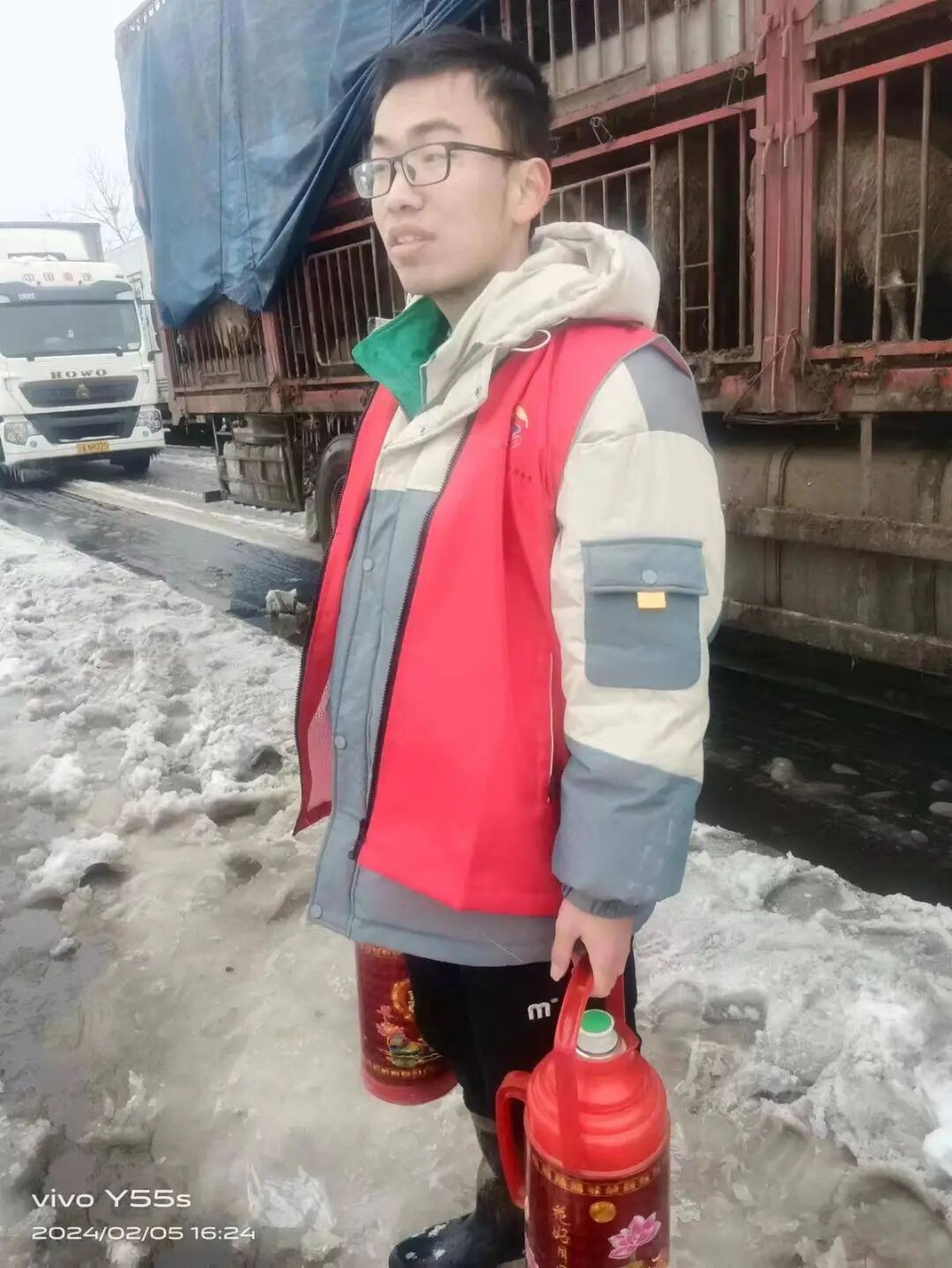 2月5日,低温冰冻雨雪天气持续,在京港澳高速孝感孝南段,部分滞留车辆排起长龙,湖北孝感00后大学生用寒假兼职工资给滞留旅客买物资,引发网友集体点赞。