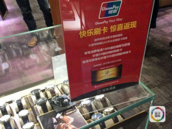 麦克朗林说,迪拜免税店高度重视对中国消费者的营销与服务,早在2011年即全面开通受理银联卡,是阿联酋第一家开通银联卡和接受人民币现金支付的商户,并且连续多年开展针对银联卡持卡人的专属优惠礼遇。
