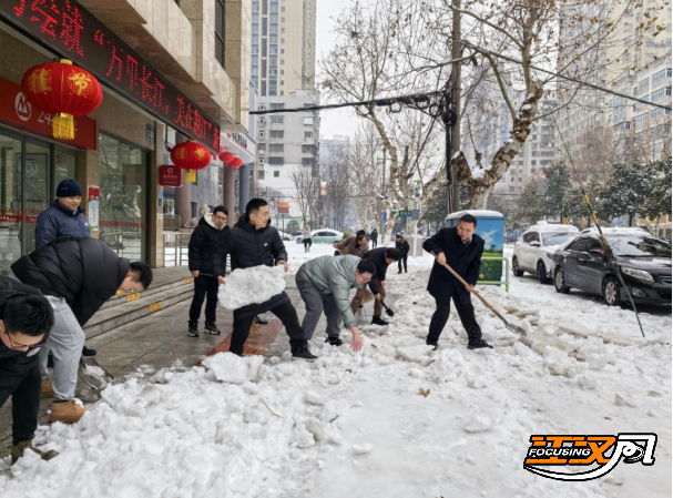 为保障道路的通畅和客户、员工的出行安全,招商银行荆州分行以“雪”为令、快速反应,由分行王劲松行长带领党员突击队和青年突击队开展铲雪护行活动。党员同志们和青年同志们拿着铁锹和扫把等主要工具,先后前往分行营业部、沙市支行、沙北支行扫雪除冰,把网点出入口、临近主要街道两旁清出一条绿色通道方便群众出行。