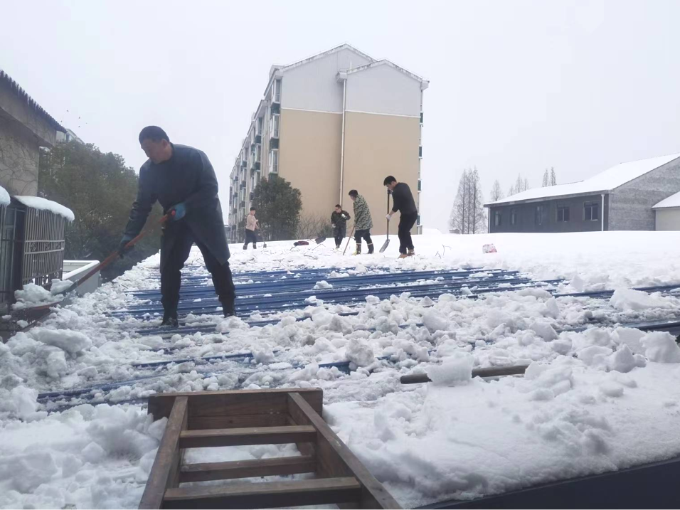 荆安村闻雪而动、鏖战冰雪,第一时间启动应急预案,全力以赴做好扫雪、除冰等各项工作。因主干道路面积大,为了保障辖区及周边村民的出行安全,荆安村自行出资租用铲车对辖区主干道路积雪进行了铲除;为了保障村民生命、财产安全,荆安村组织村组干部深入农户,实地排查大跨度钢结构屋顶和房屋屋顶可能存在的安全隐患,及时清除危险房屋、种植大棚、储物仓库的棚顶积雪,减轻房屋负荷,避免因积雪坠落或压塌造成人身伤亡及财产损失。