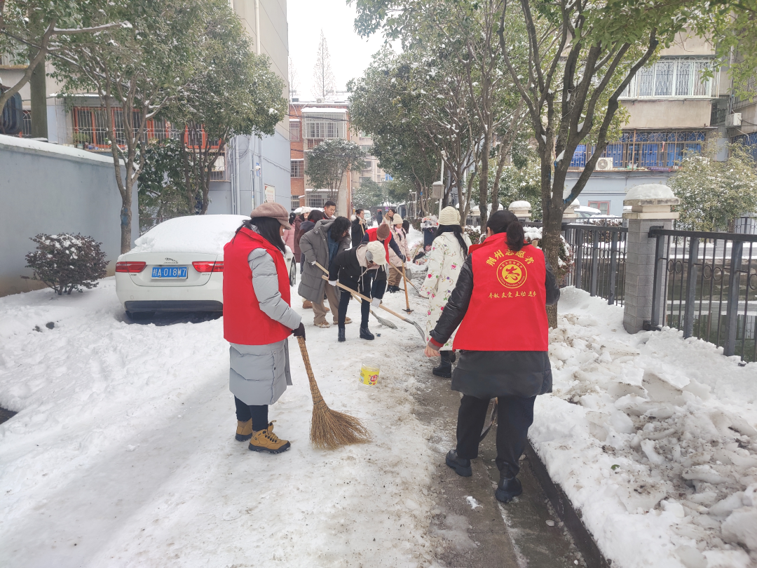 郢城镇聚贤社区第一时间安排部署,迅速启动扫雪除冰应急预案,提前安排值班备勤。下沉党员干部和社区工作人员不顾严寒,积极行动,纷纷拿着扫雪工具,集中对背街小巷的积雪、冰块集中进行清理。