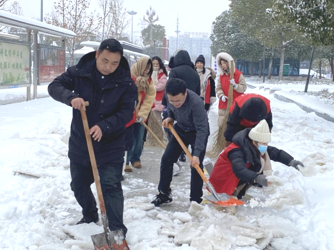 凤鸣社区全员出动,争分秒、抢时速,联合党员、物业企业、志愿者等100余人,在火车站广场、居民小区开展除冰扫雪行动,保障旅客、居民出行安全。