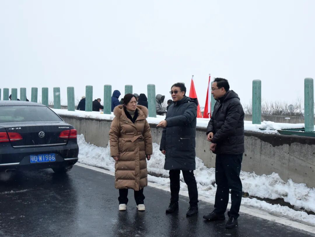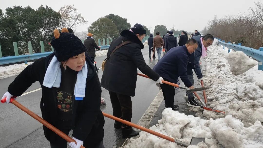 菱角湖管理区组织150余名党员干部在万城大桥高速段铲雪除冰。