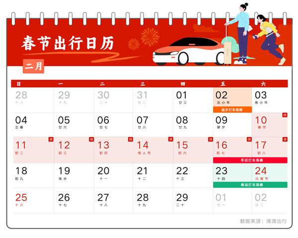 滴滴预测2024年春运出行高峰日历。滴滴供图