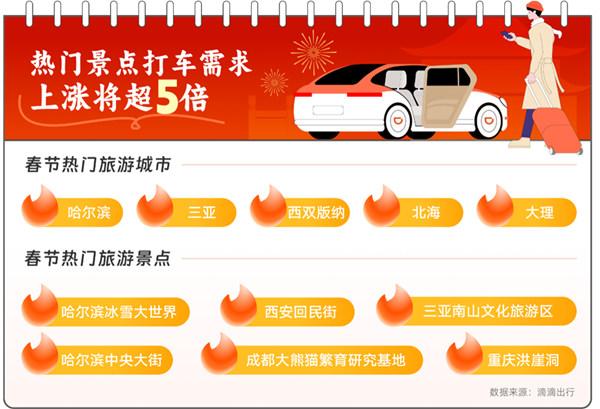 2024年春节期间热门旅游城市及景点。滴滴供图