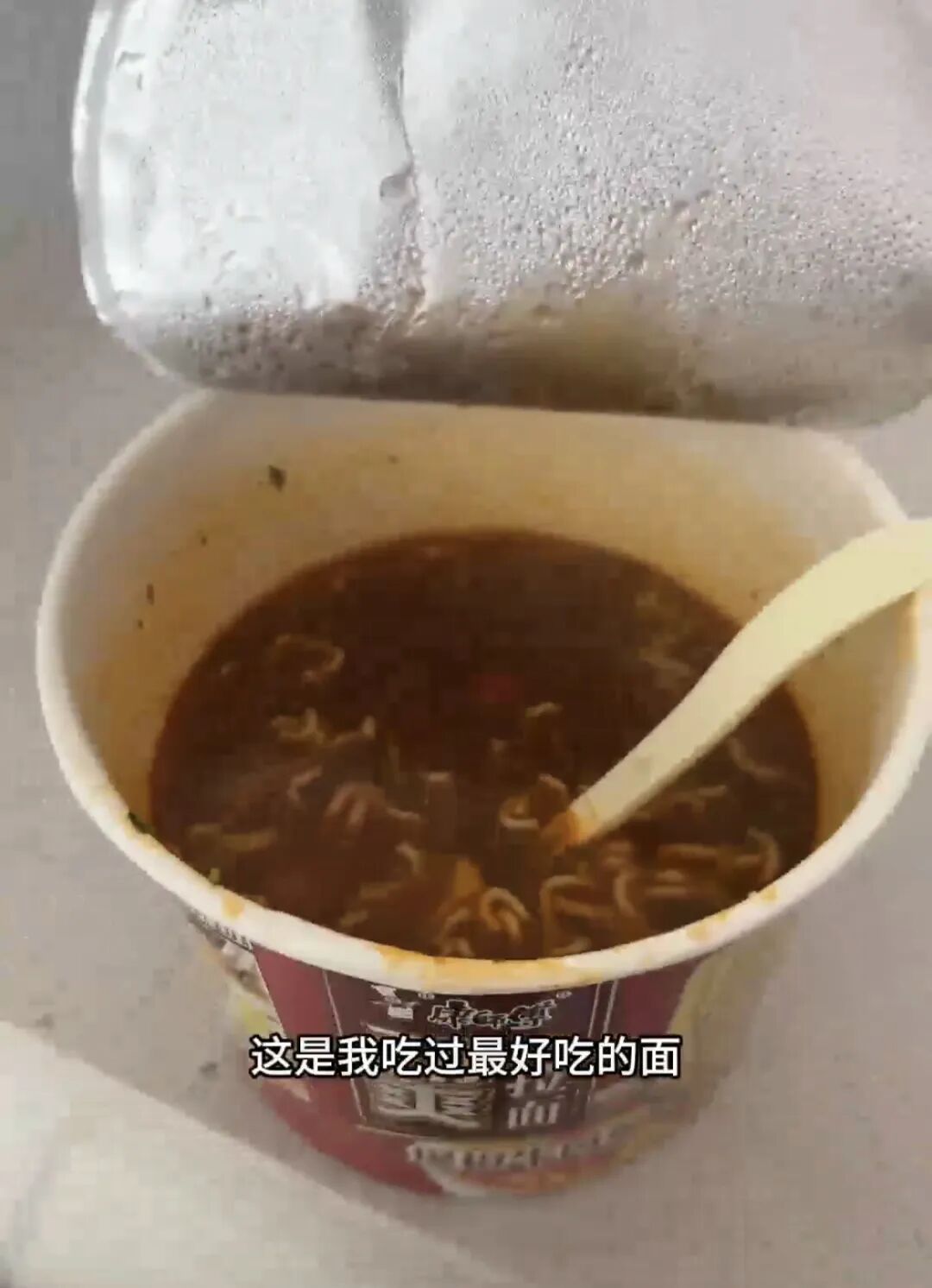 和同伴泡了桶方便面