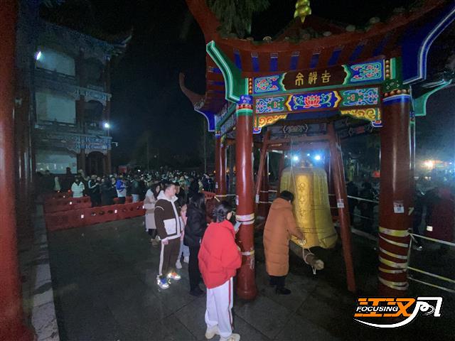 江汉风报道:2月9日晚是除夕夜,荆州市最热闹的地方要数章华寺,很多市民都会来到这里祈福,敲响新年的钟声。
