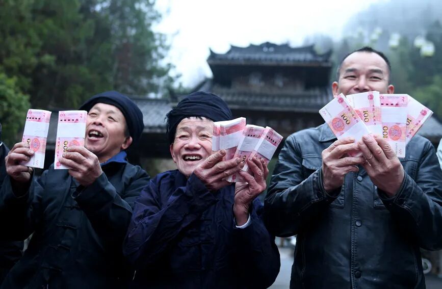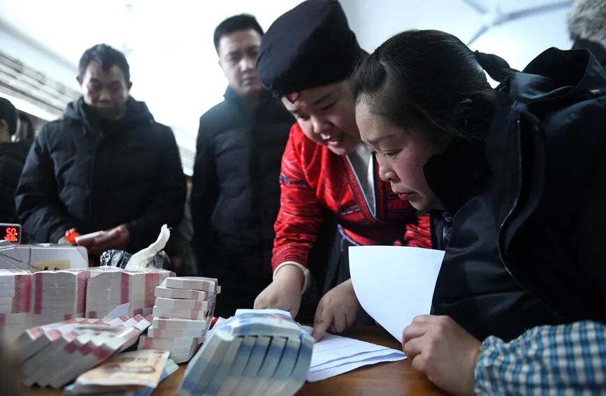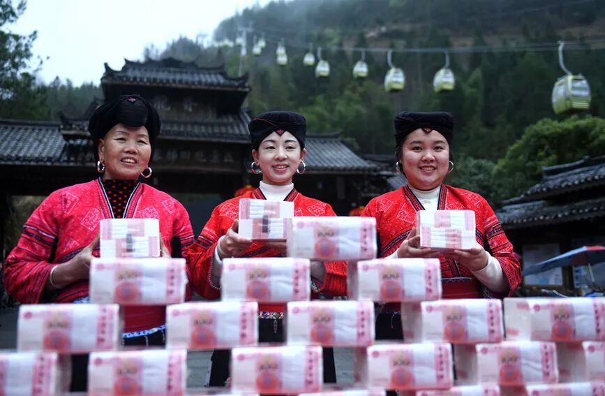 “哗哗哗……”点钞机不停地响,广西桂林市龙胜县龙脊镇大寨村村民穿着盛装正有序地排队领取分红,一沓沓钞票拿在手上,大家的嘴角止不住地上扬。