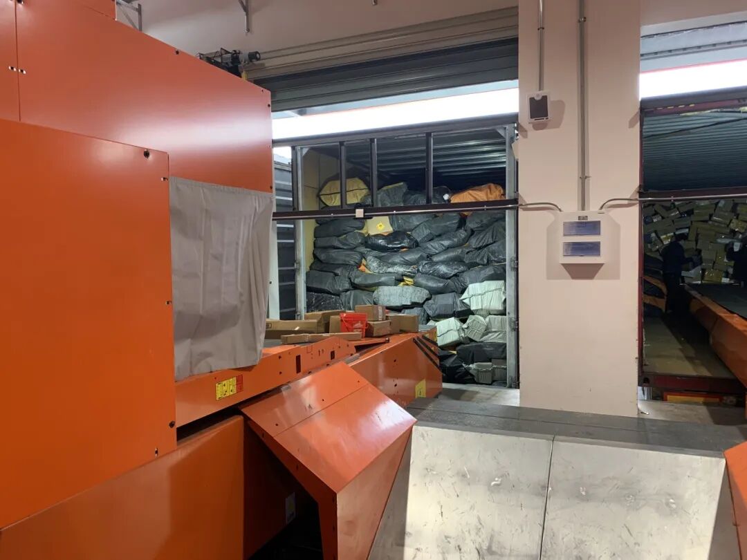在分拣区,快件从货车上转运至中央处理区的传送带,再被传输至“小黑屋”,经过智能快递机器人分拣系统,被送往不同片区等候转运派送。潘政委说,“小黑屋”里装有高速相机,能高效读取运单信息,实现自动化分拣,与传统人工分拣相比,效率大幅提升,分拣错误率降至1%以内。