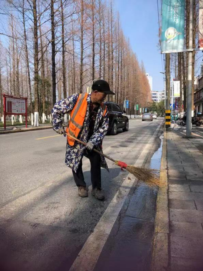 春节假期,他和往常一样,推着环卫快保车,拿着扫帚,熟练地清扫路面、人行道等区域的垃圾落叶。